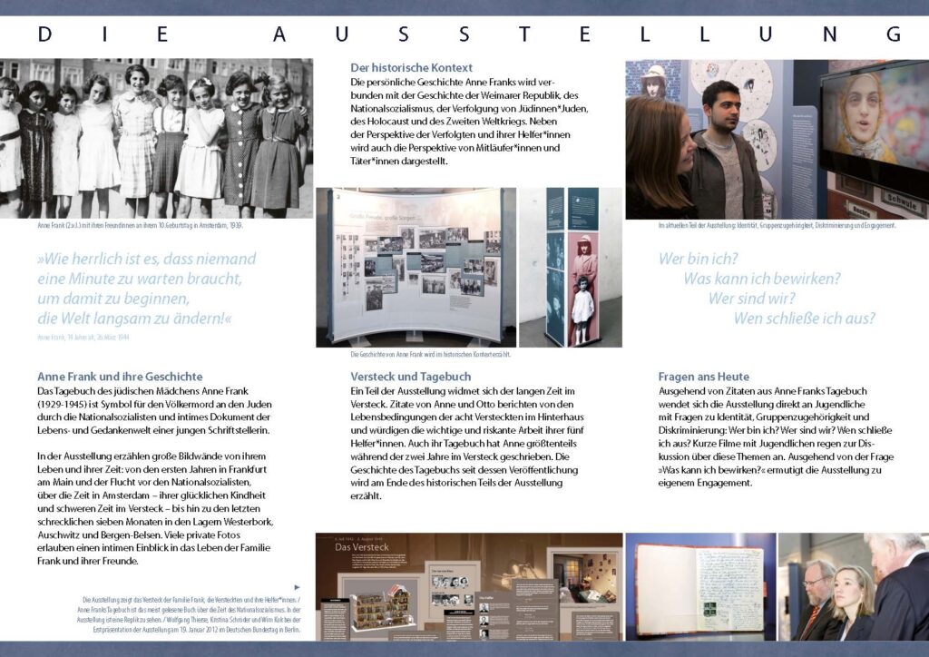 „Deine Anne. Ein Mädchen schreibt Geschichte“ ist ein interaktiver Lernort über das Leben von Anne Frank (1929–1945).